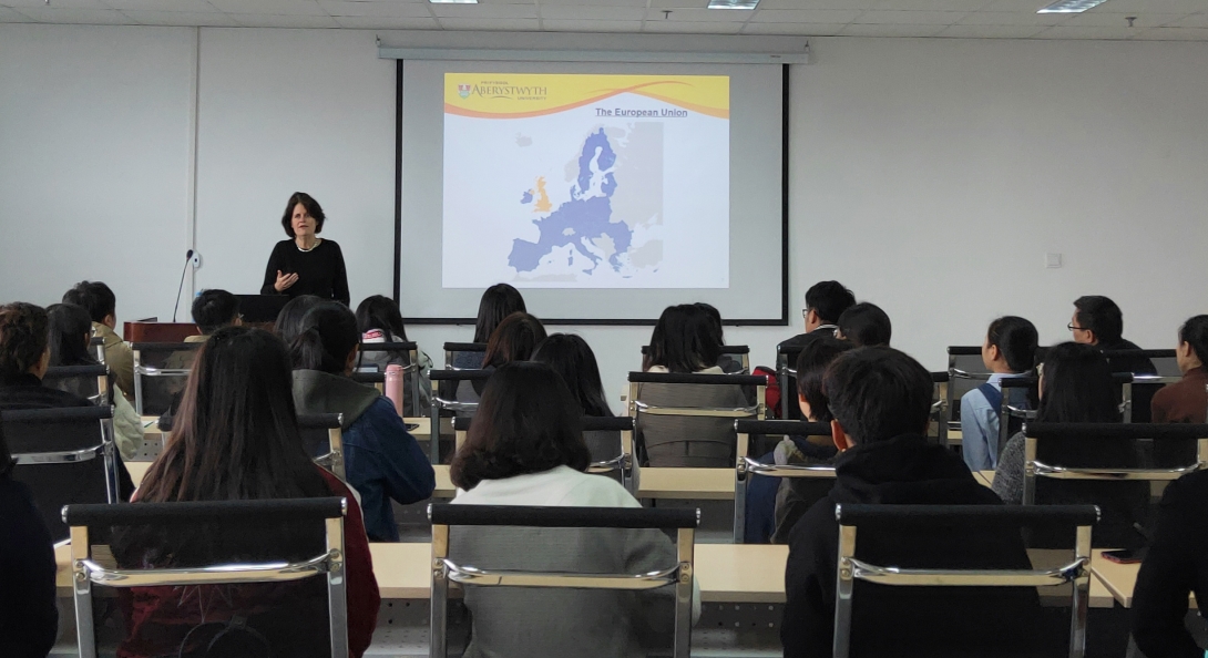 11月7日上午10点,7教1207座无虚席,Megan教授为前来倾听亚伯体验课的同学们开展了《Brexit, The UK and Wales》的主题讲授。她主要针对英国脱欧后的经济发展以及未来走向做出了自己的分析,并重点提到了威尔士这一地区即将面临的危机与挑战。