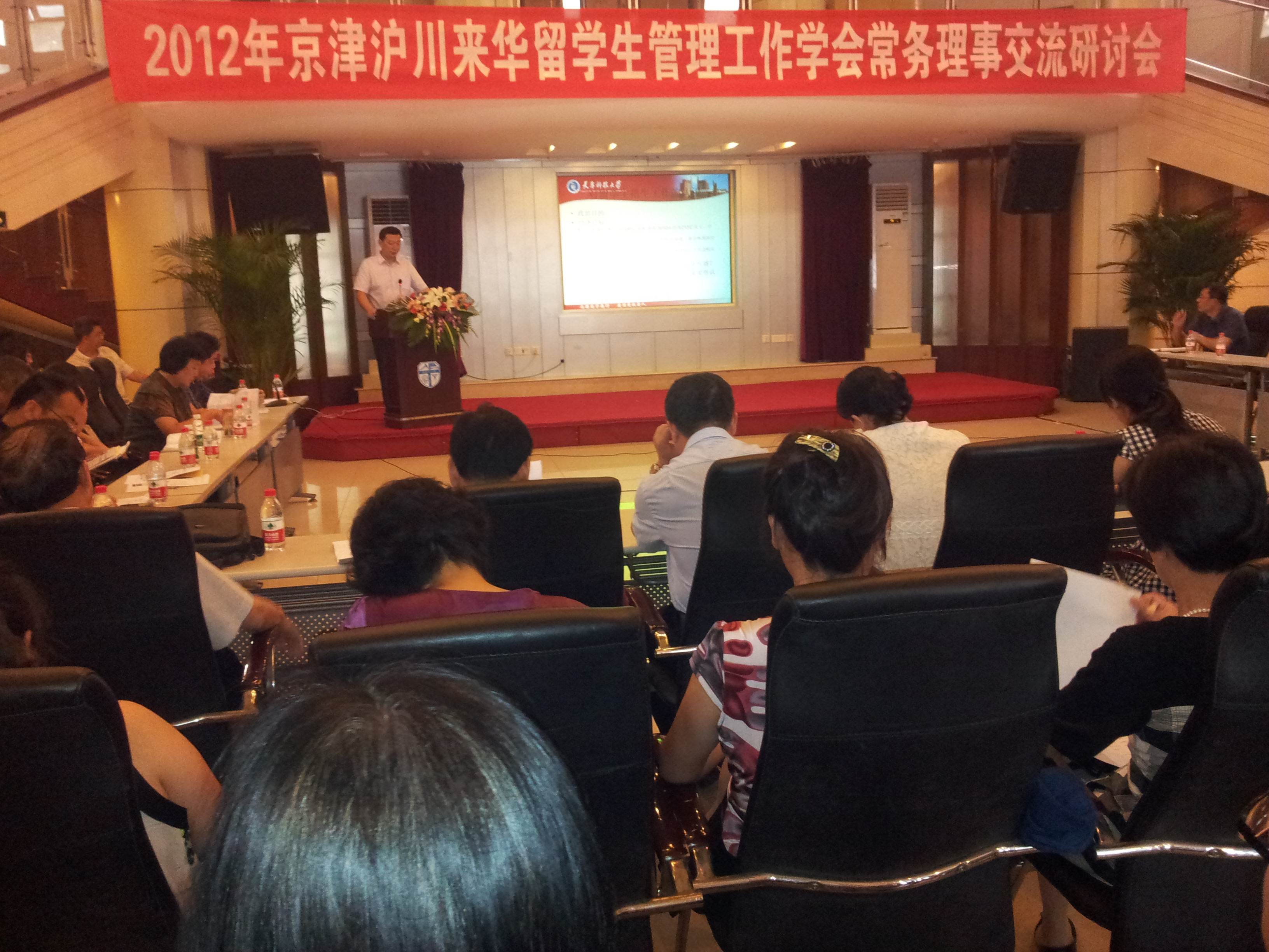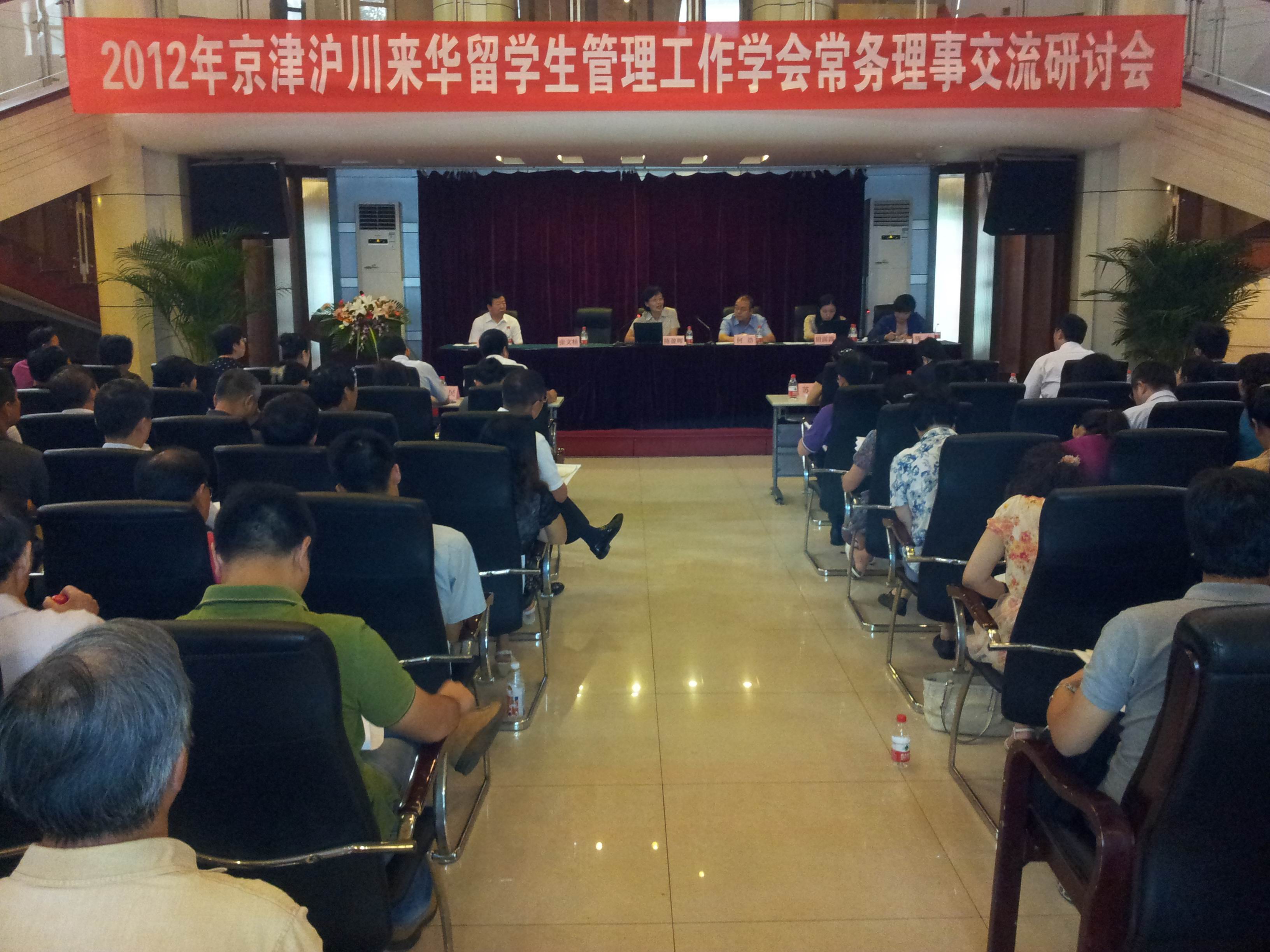 8月10日,2012年京津沪川来华留学生管理工作学会常务理事交流研讨会在西南交通大学成都校区举行。教育部国际司副司长陈盈晖、四川省教育厅副厅长何浩、西南交大副校长张文桂等领导到会并发言。来自北京、天津、上海及四川四省市高校参会代表共124人。我校国际交流合作处副处长夏新蓉、留学管理科科长王勇出席会议。