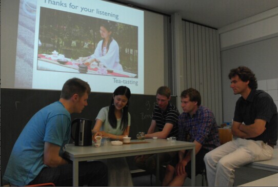 同时,我校学生还与德方的同学交流了我国的农业政策,我国农民收入现状和发展前景,我国农产品结构等方面的问题;并就自己的研究方向做了全英文的报告,茶学专业的研究生还现场展示了我国的茶艺,得到了德方老师和同学的一致好评。交流访问结束后,德方向我校学生颁发了交流学习证书。