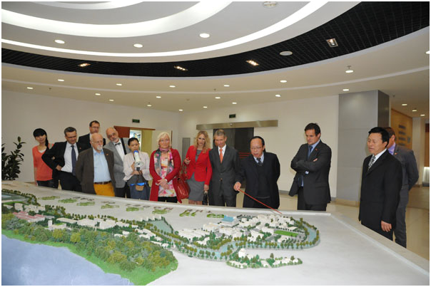 帕普克一行在邓良基等陪同下参观了校史陈列馆和市区灾后重建规划馆。