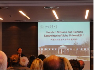 6月30日,德国波恩大学为邓良基举行了隆重的欢迎仪式,会上波恩大学农学系主任(院长)谢兰德致辞,并就波恩大学农业科学研究作了专题报告,邓良基作了四川农业大学综合发展的专题报告。双方回顾了多年的合作成效,并就下一步在研究生培养、学生交流、学术交流、合作研究四个方面达成新的合作意向。