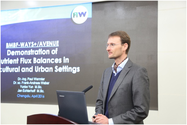 德国专家Paul Wermter博士瓦格代表德国北威洲、环保部的老朋友们向我校师生表达了问候,希望与我校课题小组进行深入细致的科研工作。他谈到,四川农大拟定的研究方向正是德国亚琛工业大学的项目组兴趣所在,为了确保科研工作顺利、科研成果呈现得更好,为确保采集与整理工作、监测数据分析到位,为此邀请了德国相关企业人员参与。同时,中国西博会,德国将作为主宾国参展,希望与四川农大加强合作,共同开展相关工作。希望围绕中国“十三五”规划,共同探讨相关课题的目标、重点,将发展得较好的城市化中心地带、农业发展滞后的地区列为研究对象。
