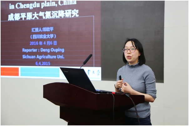 我校研究团队一线核心成员邓欧平讲师做了题为《成都平原氮磷沉降对非点源污染的贡献研究》的研究成果报告。据其介绍,中国已经成为氮素沉降的热点区域,大气氮沉降占化肥施用量的一半。成都平原作为城市高度发展区域和农业核心区,该区域由于氮磷肥挥发、畜禽粪便挥发和化石燃料燃烧等原因,氮、磷通过地球化学循环再次沉降的量很大。一方面,大量的氮、磷沉降可能导致环境污染,尤其是对水环境的污染风险很高;另一方面,高量氮、磷沉降也能作为农业生态系统的肥料补充。 本研究探讨氮、磷沉降对水体非点源污染的贡献及对农区农业生产的贡献,积极研究与发展土壤污染和水质污染控制与修复相关技术,为土壤环境、水环境管理提供决策依据。因此选择崇州市作为研究区域,选择具有代表性的农业集中区、城镇居民区、工业区和乡镇居民区为代表,监测并估算区域的氮素干湿沉降。