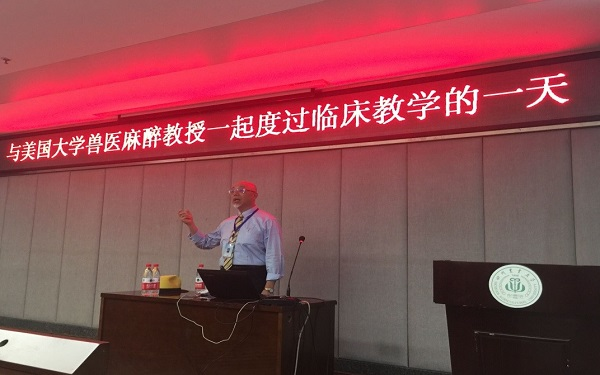 柯志恒教授以美国兽医招生选拔开头,为大家详细讲解了美国普渡大学DVM学生选择的标准。结合他本人在美国普渡大学兽医教学医院收集的大量临床病例图片以及视频,详细阐述了大动物(牛、马、羊驼、猪等)和小动物(犬、猫、兔等)以及部分野生动物(猫头鹰、鸟类等)在麻醉前动物以及人员的准备、麻醉药物的选择、麻醉深度控制以及术中镇痛药的选择等。