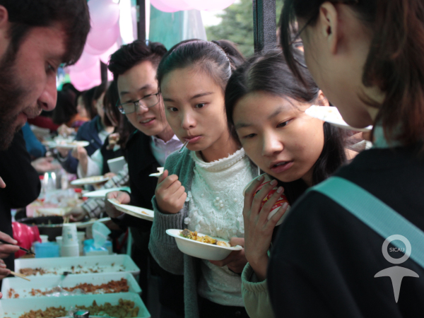 10月30日上午,由校国际交流合作处主办,动物科技学院青年志愿者协会协办的四川农业大学第一届国际文化美食节在成都校区食堂小广场前如火如荼地进行。