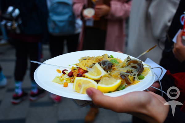 上午11:30活动正式开始,成都校区同学们对异域美食展示出了极大的热情。11个国家留学生精心准备了40余道美食、热饮,身着各国民族服饰在精心布置的展台为家乡美食拉票。意大利的空心粉、巴基斯坦的手抓饭、印度的秘制汤料、刚果的炸鱼,来自世界各地的美食吸引着同学们争先恐后的去品尝。现场还有加纳留学生用热情的非洲鼓节奏为活动造势,现场参与的同学都纷纷为此次文化节的创意点赞,展位上一度排起长队,同学们品尝美食的同时还不时与留学生们进行厨艺交流、风俗文化讨论。在品尝完各国美食之后,同学们也不忘为自己喜欢的美食投上一票,主办方准备的一千余张选票悉数发出。