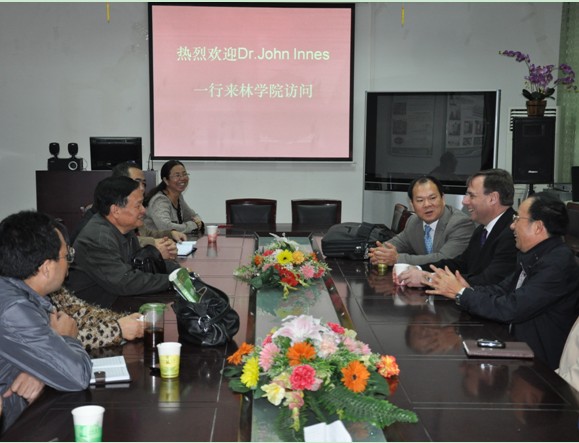 John Innes对学院的热情接待表示感谢,介绍了UBC林学院近几年的发展壮大进程。他称学校现在有很多亚洲人的面孔,越来越多的亚洲学生进入学校,越来越多教授对中国感兴趣,并有多位教授在中国各地做课题研究,希望能够与我校在课题研究、师资交流等方面进行深入的合作和交流。