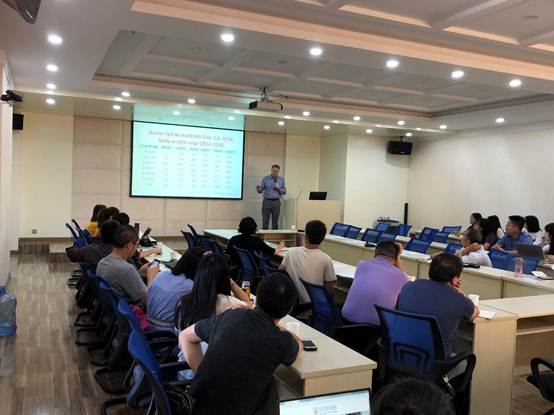 2019年9月6日-9月13日,“动物营养与饲养科学学科创新引智基地”(“111基地”)特聘外籍专家,美国乔治亚大学家禽科学系主任Todd J. Applegate教授到我校履职。期间,Applegate教授为我校师生带来了两场精彩的学术报告,报告题目分别为《Amino acid function on intestinal health during enteric challenges in the broiler》和《Micromineral influence on enteric health of broilers》。该报告在成都校区6教9楼会议室举行,营养所和动科院、动医院120余人聆听了报告。Todd J. Applegate教授结合经典文献及自身的科研成果,紧密围绕肠炎条件下氨基酸和微量元素对肉鸡肠道健康的调控作用及其机制研究,详细讲述了在不同的攻毒模型下,如LPS或球虫或产气荚膜梭菌攻毒条件下,赖氨酸、苏氨酸、精氨酸、不同锌源及锌水平对肉鸡肠道健康及免疫功能的调控效应。同时,Todd J. Applegate教授结合自己的科研经历,向大家传递了在科学研究中如何发现科学问题,如何提出科学假设并进行试验验证等。师生们认真聆听后并开展了深入交流。通过学习和交流开拓了我们的国际视野,提升了大家的科研思维和素养。