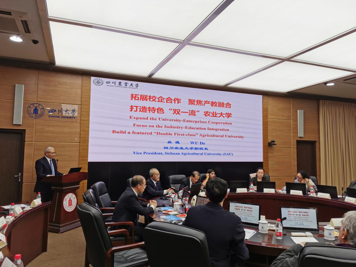与会代表围绕“加强高校合作,促进民心相通”主题展开深入交流和探讨。吴德应邀作了题为“拓展校企合作,聚焦产教融合,打造特色“双一流”农业大学”的发言,介绍了我校国际合作以及学科发展状况,重点推介了产教融合特色模式,倡议在中印领导人最近的非正式会晤的良好交流背景下,以明年中印建交70周年为契机,开展更广领域、更深层次的人文交流,立足川印农业科研学术领域的合作需求与前景,深化学科交叉、促进学术交流与对话,增进中印大学之间的合作。吴德的发言得到与会参会大学校长的普遍认同。