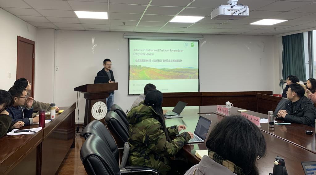 12月26日,管理学院“问道讲坛”第三期开讲,德国莱布尼茨农业景观研究中心研究员陈成博士应邀作题为“生态系统服务付费(生态补偿)的行为主体和制度设计”学术报告。管理学院多名教授、青年教师和硕博研究生前来聆听。