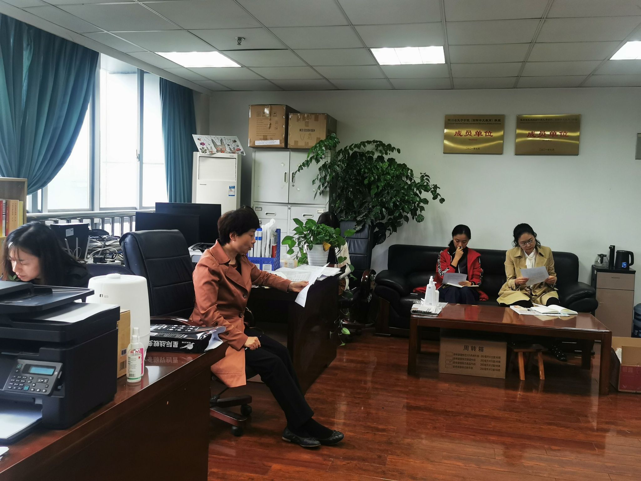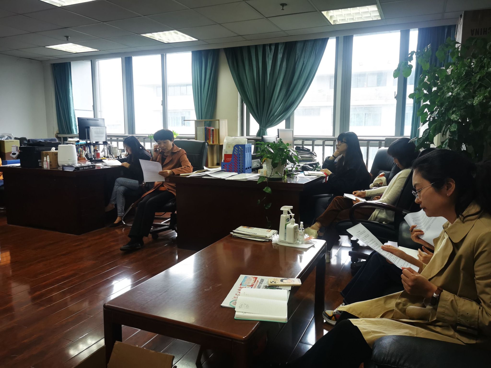 5月9日下午,国际交流合作处直属党支部全体党员在1教606办公室就学习贯彻习近平新时代中国特色社会主义思想主题教育进行集体学习,学习活动由支部书记夏新蓉主持。