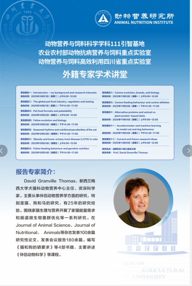 【外籍专家学术报告】动物营养与饲料科学学科111引智基地承办